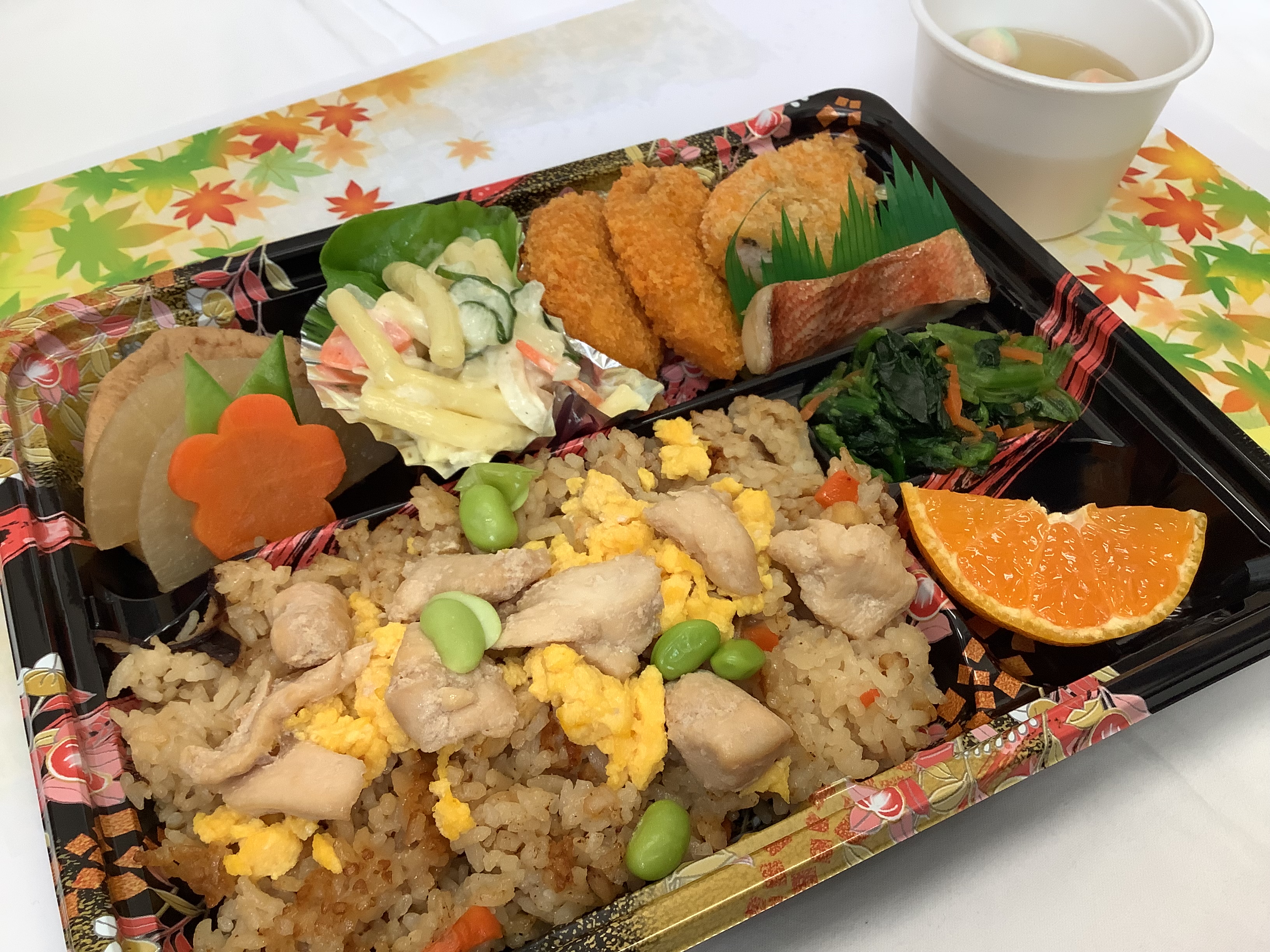 お知らせ BACK 【イベント食】行楽弁当 2025年11月19日 朝晩寒くなりましたが、いかがお過ごしでしょうか。 紅葉は今からですが、一足先に行楽弁当を提供しました。 <お品書き> ・とりめし ・魚の塩焼き ・ミックスフライ ・炊き合わせ ・マカロニサラダ ・果物 ・すまし汁 「ボリューム満点でおいしかったです」とお声をいただきました。 これからの紅葉が楽しみですね。 栄養科 一同 ← ひとつ前のページへ戻る