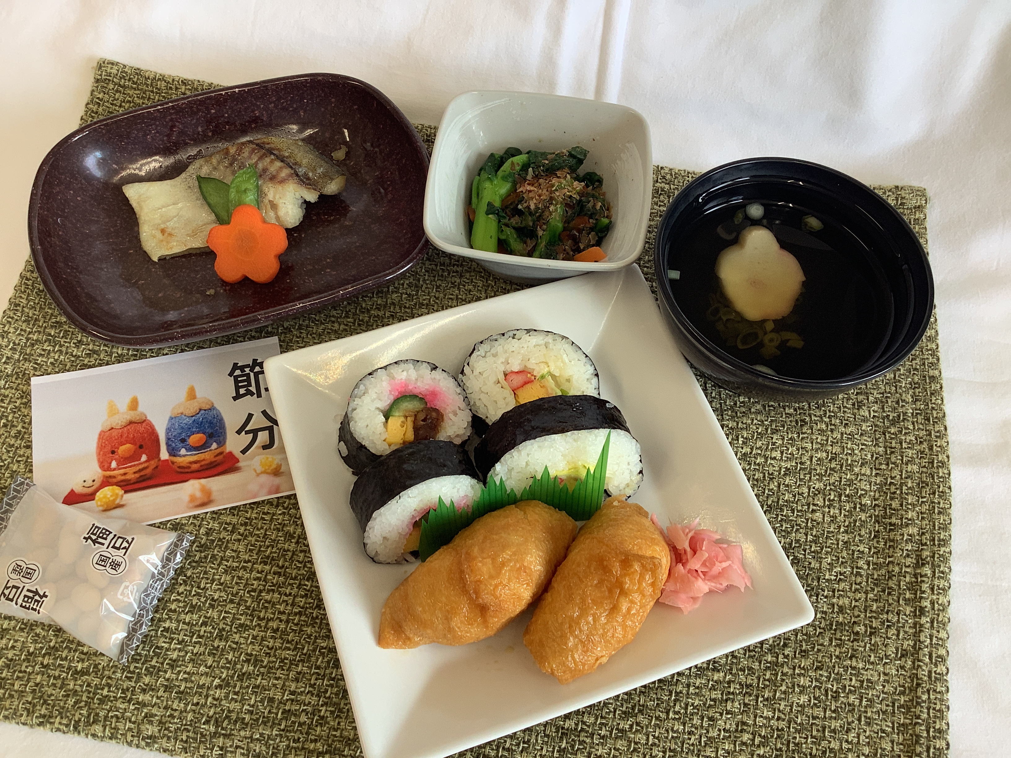 お知らせ BACK 【イベント食】節分 巻き寿司 2026年2月 3日 本日は節分です。当院では巻き寿司を提供しました。 <お品書き> 巻き寿司 サラダ巻き 助六 魚の塩麹焼 菜の花の和え物 清まし汁 福豆 まだまだ寒い日が続きますので、体調管理はしっかりと。 皆様のところに福が届きますように。 栄養科 一同 ← ひとつ前のページへ戻る
